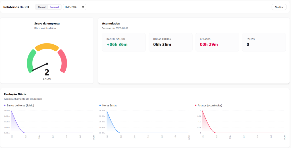 - Dashboard exclusivo que pontua o risco trabalhista da sua empresa em tempo real.